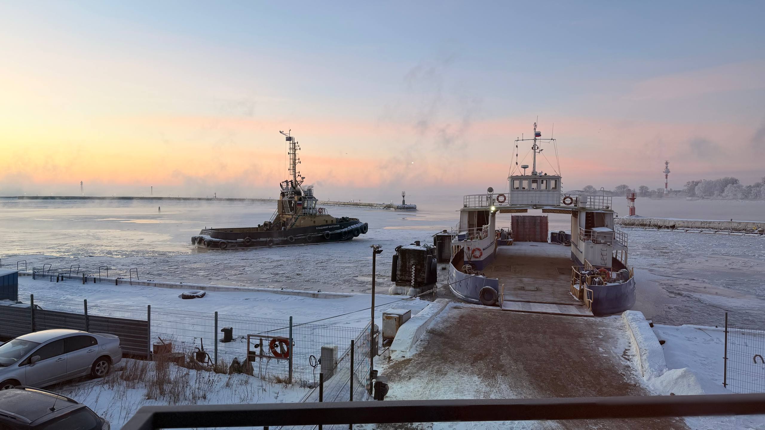 Аномально низкие температуры в Калининградской области привели к закрытию паромного сообщения между Балтийском и Балтийской косой. Ледовый покров на море, подкрепленный сильным восточным ветром, значительно усложнил работу переправы, что фактически изолировало около двухсот жителей поселка Коса в выходные дни.